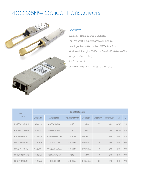 · 40G QSFP+ Optical Transceivers