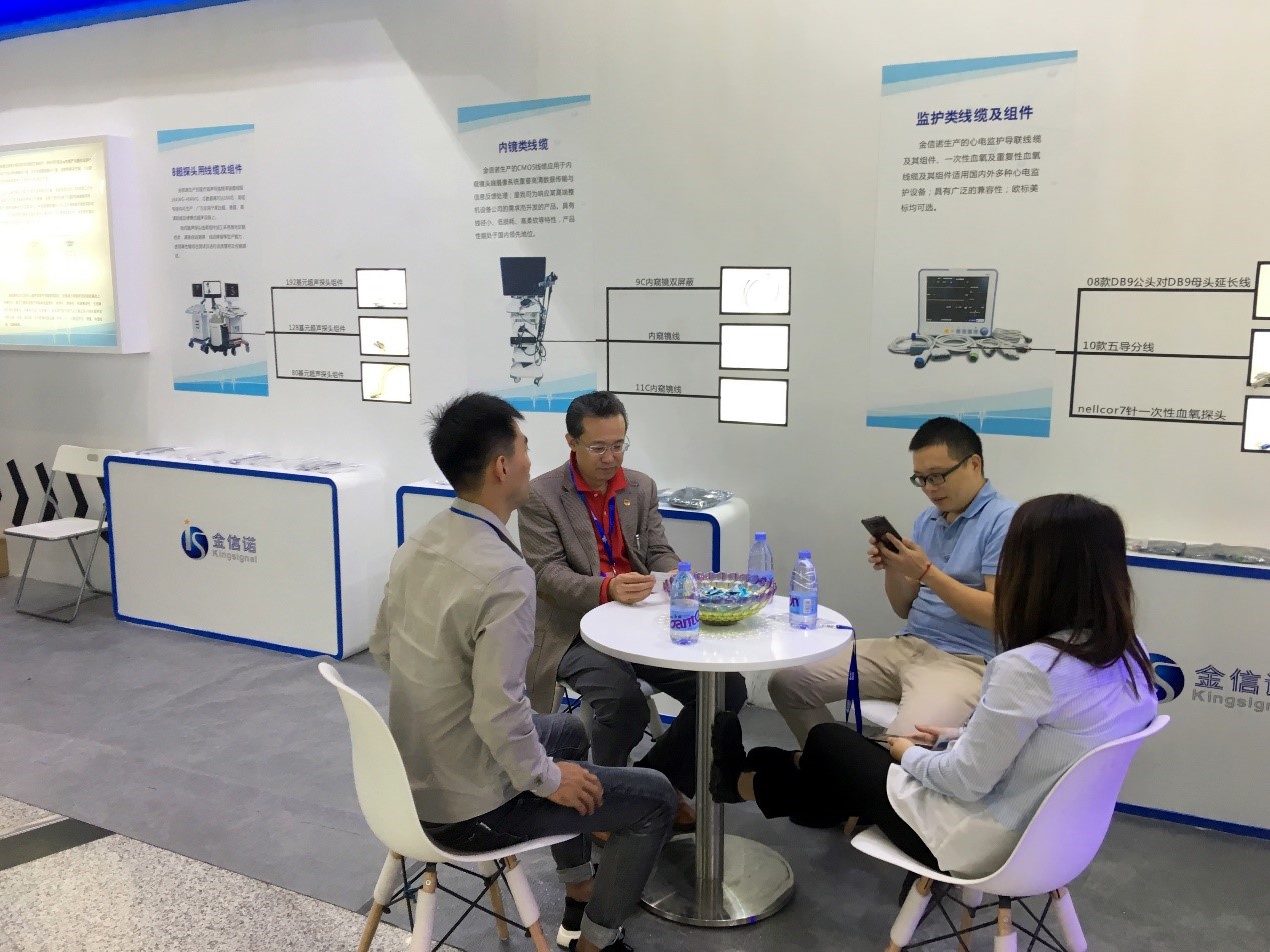 At this exhibition, Kingsignal exhibited the cables and components of B-ultrasound probes, endoscope cables, monitoring cables and components for the professional audience on the spot. The products are mainly used in external ultrasound diagnostic equipment: color ultrasound, black and white super; external imaging examination equipment: MRI, CT, ECG monitor, gastroscope, body temperature detection, blood oxygen line.